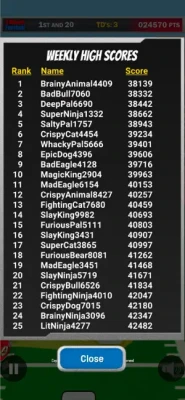 • Weekly high score tournaments