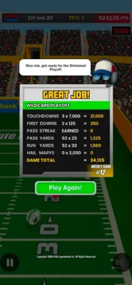 You've got a minute to rack up as many points as possible with touchdowns, special bonuses, and yards gained for every play.