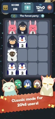 Developed by Zplay (Beijing) Info. Tech. Co., Ltd., this version of 2048 Beat is more than just a math game; it's a "Puzzle Happy Zoo." Instead of sterile numbers, you interact with beautifully designed animal avatars that pulse to the beat of high-quality background music. The game features multiple modes—including the challenging Savannah Mode—and a progression system that rewards you with "Music Fragments" to unlock new tracks in the Music Store.