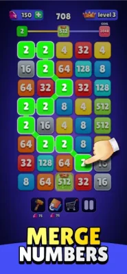 Addictive Merging Mechanics: Combine number blocks to create increasingly larger values.