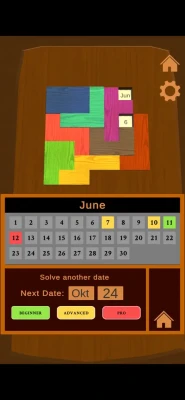Place all blocks to reveal the current date. The playfield of this puzzle consists of all days of the year split into months and days. Try to block every month and day, except the current month and day. Choose your difficulty. New to puzzle games? No problem, try the beginner difficulty and play with smaller blocks, making it easier to find a solution. Once you have solved a date, your progress is saved into a calendar. Can you solve every date of the year? With 3 difficulties and 365 days (366 on a leap year), there are more than 1000 puzzles waiting for you.