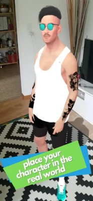 Point the camera on any flat surface in your surroundings whether it is a table, floor, wall, or anything. Place your character on that surface and have unlimited fun. Workout with your virtual bodybuilder in your bedroom, living room, or in your office.