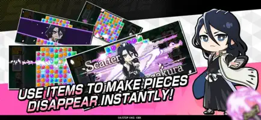 All your favorite characters from the hit manga and TV anime series BLEACH arrive in BLEACH Soul Puzzle! An exciting yet simple BLEACH puzzle game where you match 3 puzzle pieces to make them disappear! Enjoy this puzzle game with adorable mini-versions of BLEACH characters!