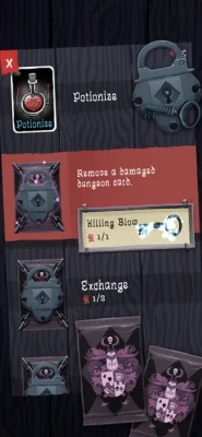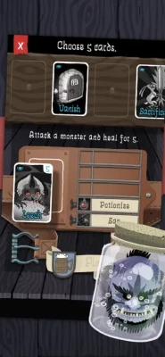 Clear the dungeon of 54 cards by using item-cards, slaying monsters and managing your limited inventory. On each run, you can use five ability-cards (mini deck building) to gain unique skills. By collecting gold, you can unlock 35 more ability-cards to access new tactics and even higher scores.