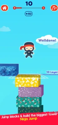 This is simplistic tap game. Tap to jump the ninja on stacked blocks. This game will test your ninja skills. How high can you stack these blocks. This wonderful and colorful game comes in two different modes i.e. Arcade Mode and Endless Mode.