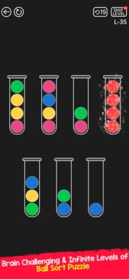 Try to sort the same colored balls in the tubes until it gets filled with all same colored balls. Simply said the puzzle is to stack all the balls with the same color into a single tube.