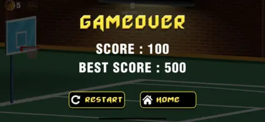 In the distance mode goal is to shoot successfully from the longest possible distance. Initially the player needs to shoot from a distance of 1 meter, if he achieves this goal, then he will have to shoot from a longer distance. If the player misses the basket then the distance is shortened by 1 meter. It is game over when the distance is zero meter.