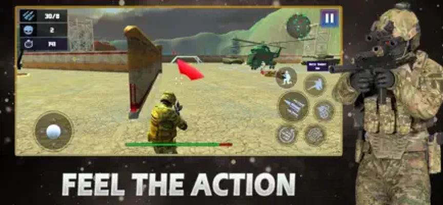 all the surrounding area of the base is under terrorist control so first of all make sure you're surviving during the rescue operation. Because one bullet will kill your mission strategy. pick up your sniper rifle along with a modern war machine gun. Use your gorilla war tactics to eliminate moving and hidden targets. use your military training strategies to cover the main battleground distance without making any noise. You are a trained warrior for the FPS commando secret mission, so playing the commando mission game feel like a pro fighter and fight with a big heart. get a health kit to keep track of your health while fighting on the battlefield. To defeat the enemy's commando secret mission games, reload your weapon promptly and win within the time limits. face all the deadly weapons strikes and utilize all of your survival skills.