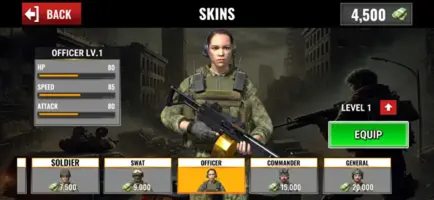 - 9 character skins: Militia, Mercenary, Guerrilla, Guard, Soldier, Swat, Officer, Commander, General