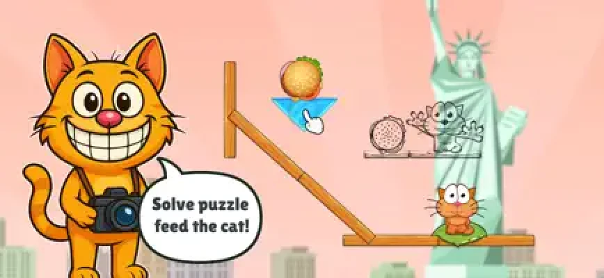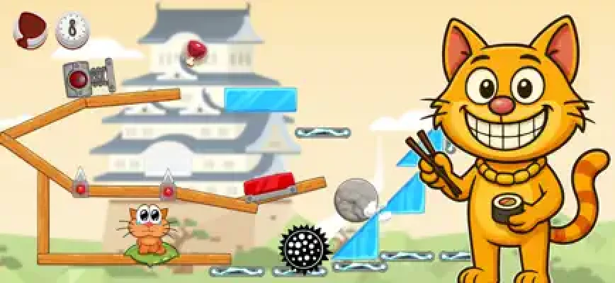 Use your logical thinking to solve addictive puzzles by breaking ice and sand blocks, trigger springs to help the Hungry Cat get his tasty burger, pie, shrimp or sushi.