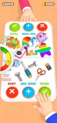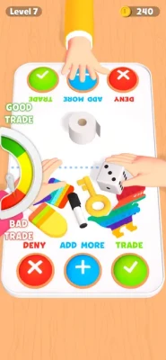 Pop All the Fidgets! Trading Master is a super fun simulation game where you trade so many different fidget toys and objects! Drag an fidget from your inventory to start the trade or place an item as your opponent starts! If you all agree on the deal push the tick button to complete the trade. If you want to reject simply push the cross button to decline the trade. Get more items from your opponent with the plus button! Are you ready to collect all Fidget Toys Grow your inventory and be the Trading Master!