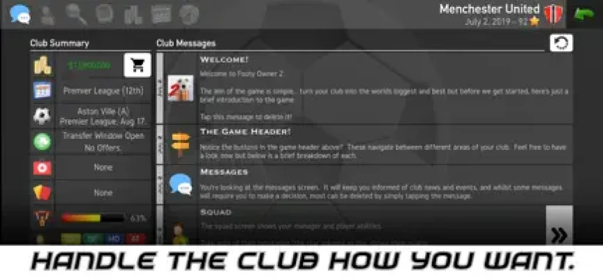 Make life easy and select an established club with superior finances, huge fan base, excellent facilities and a squad of talented players or really challenge yourself and select a lower league club with limited funds, facilities and squad depth! Can you develop a small local team into one of the world’s biggest clubs?