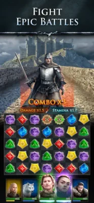 Match gems to charge your Champions' abilities. Unleash combos with strategy in this puzzle RPG to defeat your enemies. The further you go into Westeros, the closer you come to conquest, maxing out your Champions' power and dragons along the way.
