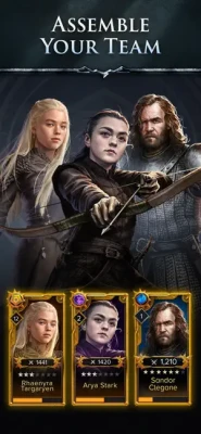 Team up with characters like Khal Drogo, Arya Stark, Drogon, and the Hound. Train your team, raise dragons, use strategy, and unlock abilities to conquer Westeros.