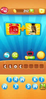 Move onto Combo Words, where two pics make one word puzzle or phrase. For example, see pics of DOG and HOUSE: combine the photos to solve for DOGHOUSE. 2 Pics, 1 Word!