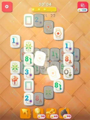 Mahjong Solitaire is a very simple and straightforward game. The goal is to clear all the tiles from the board by matching them in pairs. The tiles can only be paired if they have at least one side free and no other tiles on top of them. The drawings and symbols on the tiles must be the same in order for them to match. There are two exceptions, however. The Flowers and Seasons tiles do not need to match in drawings, only in suit.