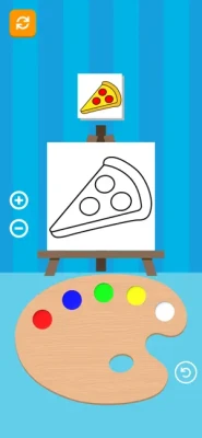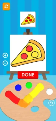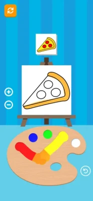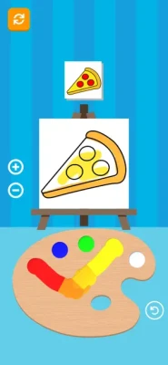 Use your fingers and the palette to mix the colors, then paint a picture based on the sample.
