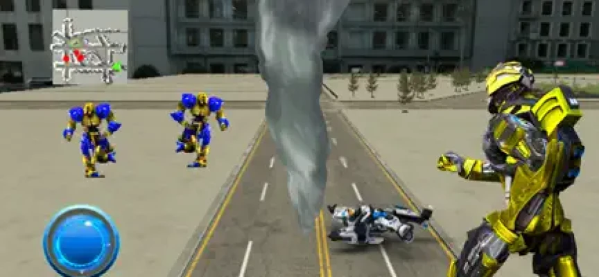 Are you ready to kill the evil robots who are creating the violence in the futuristic city? If yes, then play our Transforming Tornado Robot War game. In a few missions of futuristic robot transforming games, there will be a cut scene setting up the premise of the mission. There will be a radar map showing the positions of the objectives to attack in robot superhero games. There will be a life bar for the player robot showing the damage taken in flying robot games. The player will win if the mission objectives of tornado games are met.