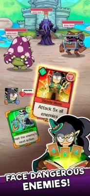 In Card Guardians, you need to win battles against monsters and build a battle card deck to defeat the Guardians of Chaos. Choose the hero of your RPG adventure, create CCG battle strategies, and discover various unexplored realms throughout the Valentia. And beware of dangers! There are dungeons, castles, forests, and deserts that harbor dangerous enemies, with the difficulty of roguelike games.