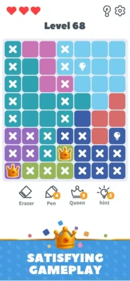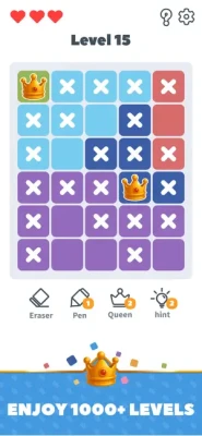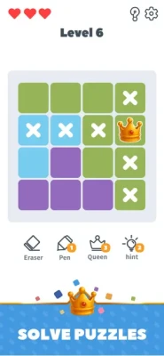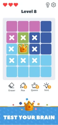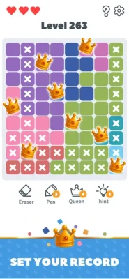 1. Simply tap a tile to reveal if it’s the perfect spot for your queen. A correct, logical placement earns you progress and glory!