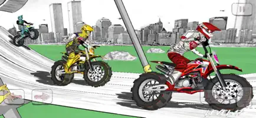 The race around the world has started! Crank up the gas on your super DIRT BIKE and race through the top hurdles in the world. Each race is a long route through several terrains against many opponents. Race through downtown San Francisco, through the mountains of northern Italy all the way back to the bright. Chose a route and race!