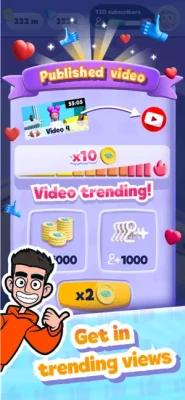 In the game, you have to start from scratch developing your own channel. Choose topics for your videos, get into trends, collaborate with famous bloggers. Open and upgrade you studio, buy beautiful things and interior items to shoot unusual content, and upload it to the virtual network.