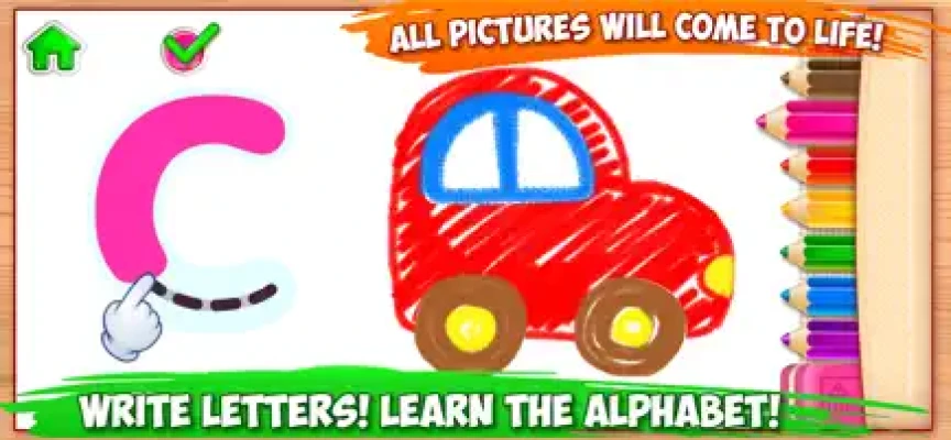 The children´s learning game Draw letters! is a wonderful opportunity to awaken your child´s interest in the alphabet and letters at a very early age. This app will teach your child to recognise the alphabet, to write letters and to get to know new words in a fun and enjoyable way. It will also develop your child´s fine motor skills and their ability to draw simple objects. This unusual mixture of drawing, learning the alphabet and teaching the basics of writing make this app truly unique!
