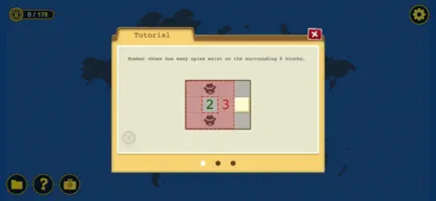 The objective of the game is to clear a country map containing hidden “spies” or secret agents without touching any of them, with help from clues about the number or neighboring spies in each field. The player is initially presented with a world map. The Player can select and choose to play a specific country by touching the country on the map. The game is played by revealing squares of the grid by touching each square. If a square containing a spy is revealed, the player loses the game. If no spies are revealed, a digit is instead displayed in the square, indicating how many adjacent squares contains spies. If no spies are adjacent, the square becomes blank, and all adjacent squares will be recursively revealed. The player uses this information to deduce the contents of other squares, and may either safely reveal each square or mark the square as containing a spy. Find your own country. It’s a great brain teaser.