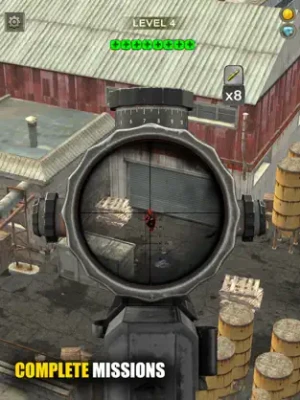 Scenarios and missions will change with each level. In this game you will protect innocent people from evil, attack enemy bases and targets. These targets can be vehicles, helicopters or ammunition depots. Just find the target, focus, hold your breath and release the trigger!