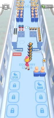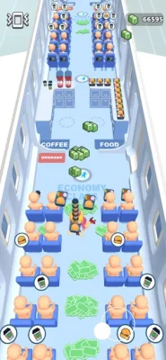 Handle all the work on the airplane Manage the airplane. Collect passengers' tickets, distribute their meals and upgrade your aircraft.