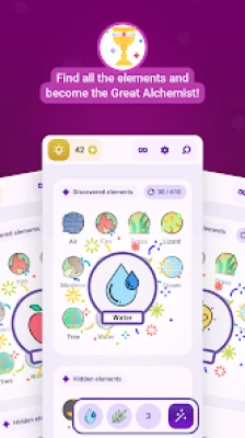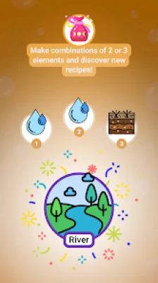 Create combinations using two or three elements (you can use every element twice or thrice). Recipes might be based on science (water + fire = steam) or on a set of symbols (fish + fountain = whale).