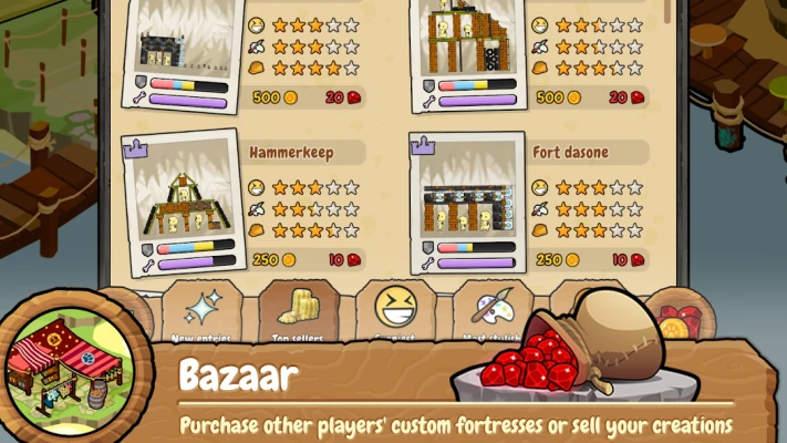 🍌 TRADE IN THE BAZAAR: better suited to fast paced action than fortress design? Save your time and effort by purchasing other players' best creations.