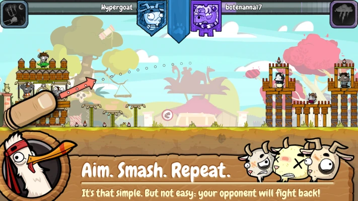 🍌 SKINS: those goats in their panties are cool, I agree.. but hey, did you see them dressed like pirates? And medieval pigs? Or prehistoric koalas? In Angrymals you can buy new skins to smash opponent fortresses with you own, sleek style.
