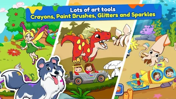 Hop on to different vehicles and steer your way forward! Our coloring game for toddlers has many locations full of animals and places that you can visit and paint! Play fun animal games for preschoolers to improve kids' painting skills and creativity! Let your kid become a little artist and enjoy coloring animals! Try Glitter coloring in a fun way!