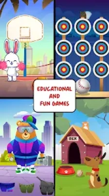 🏀 Basketball: you are on a colorful court with a super bouncy basketball. Aim for the hoop! Just slide your finger on the screen and watch the ball go swish through the net. The adorable rabbit is there to get you the ball back!