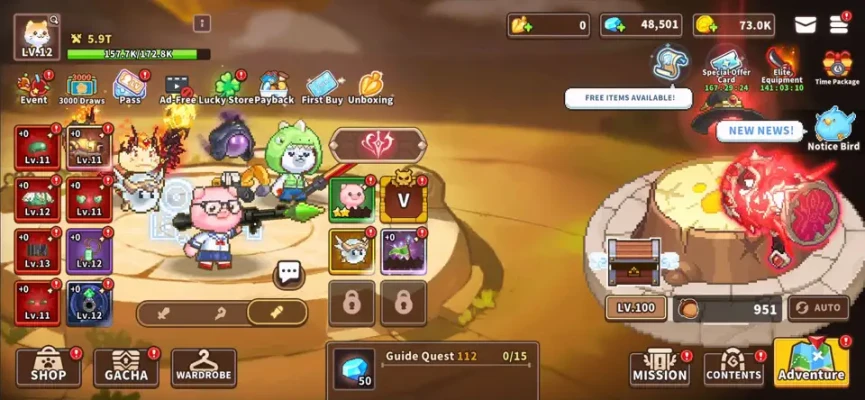 ▶ Unique appearance Great looking items made with pixels! Customize your animals with a variety of new looks! ▶ Big Boss Challenges From various monsters to powerful giant bosses! Defeat bosses that appear in each area, including dungeons! ▶ Main Story A mysterious tree suddenly springs up in the peaceful land, the world has been opened to new adventures. This special tree is surrounded by magical powers, when struck with a large hammer, powerful equipment appears with a mystical glow. Adventurers set out to find the tree to get these items, but there are many monsters and dangers lurking around the tree. When the animals hear about this, they set out to find the mystical tree in their own region...