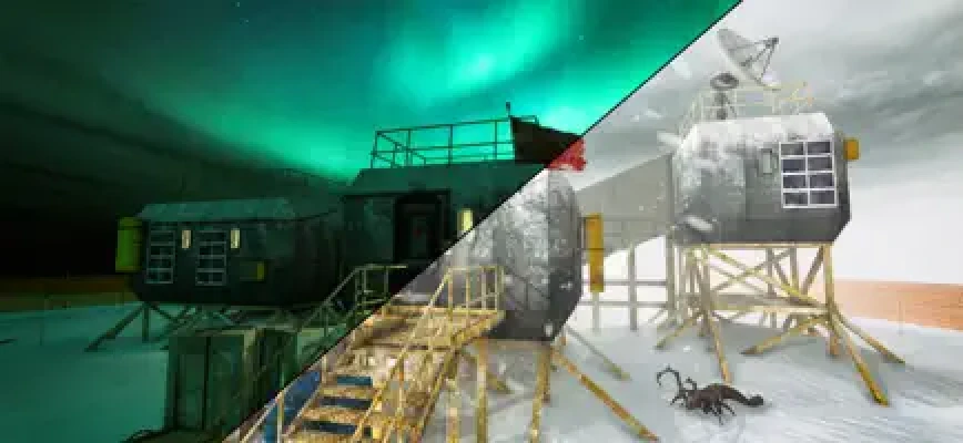 This survival thriller takes place at the station "Antarctica 1". Over the past six months the expedition of your father Vladimir Efimov has been engaged in drilling ice and exploring prehistoric minerals found in it. Six weeks ago, the expedition stopped communication. As a part of a four-man rescue squad, you have to go on a creepy adventure and figure out what strange things happened there.