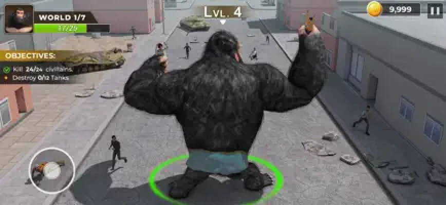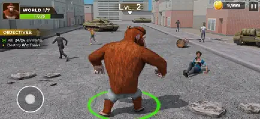 Feed yourself and grow as a evil king gorilla to become the biggest beast on the planet! Fight against mankind for hunger and survival. Become the legend and demolish the whole city!