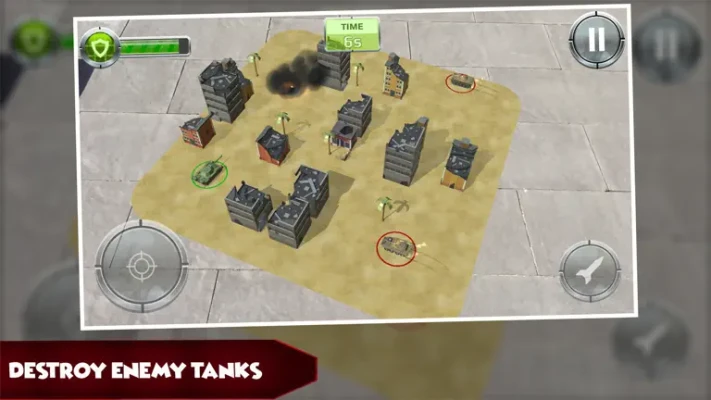 The goal of this addictive battle game is to go fight against enemy armies of tanks, guard towers, and helicopters and smash them before they destroy you. The game contains a very wide selection of missions and you can replay as much as you want to fully score the max number of stars for each mission.