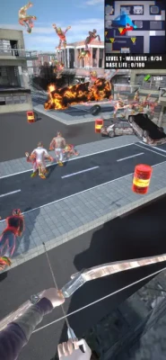 Use your precision and quick reflexes to pick off zombies before they can get too close. Test your skills against a variety of gruesome foes. From lumbering giant zombies to heavily armored monstrosities, from crawling creepers to sprinting nightmares, every zombie requires a different strategy to defeat. Make sure you aim for the head for an instant kill - a crucial tactic in the middle of a frenzied attack. Take advantage of your surroundings to dispatch larger groups of zombies. Exploding barrels offer a great way to clear swathes of zombies in a single, fiery blast. You'll also encounter desperate humans stranded atop vehicles, surrounded by relentless zombies. Your objective? Take down the attacking undead before they can destroy the vehicle and reach the innocents. Archer Defence: Hunt Zombies is a perfect blend of strategy and action. It requires quick thinking, accuracy, and nerves of steel to survive in a world teeming with the undead. Stunning graphics and intense gameplay make every level an adrenaline-pumping experience. Get ready to stand your ground and rain arrows on the approaching undead. Can you survive in a world gone mad? Grab your bow and join the fight in Archer Defence: Hunt Zombies.