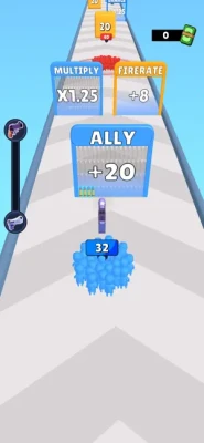 Watch out for Multiply gates! These doors are very powerful, if you go through a negative gate you will lose most of your allies. Shoot various colorful cubes and spheres on the runway. The falling parts will fill your gun's bar to evolve. It's really fun to smash these very relaxing spheres and cubes.