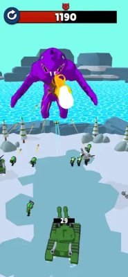 After each level you are rewarded with purple crystals. Use them to improve your tank. Upgrade the attack and defense to go as far as possible. In addition, the model of your tank is also changes and it becomes bigger, stronger and more stylish. Make it the most dangerous unit on the battlefield!