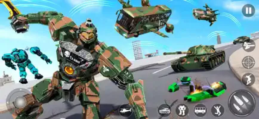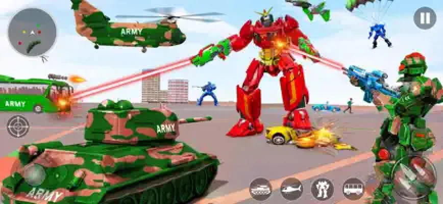 Enjoy new twist of army bus robot games and flying car robot simulation that is enclosing all the thrill of air jet robot games. Bus robot car games got a new spin with army bus robot game and airplane robot car game. Experience multi robot wars with flying cars in this army game. This amazing combination of army robot game and bus driving games brings something unique for the lovers of bus games. Robot wars in city has escalated to the level where army robots have to intervene to tackle the deteriorating situation. Army robot bus that is transformable into flying car and jet airplane has landed into the city to face the evil forces of flying car robot game. Alien robot warriors are dangerous and powerful but army robot bus has got the shooting powers and ability of transforming robot games. This robot wars are just to begin between alien forces and flying car in new army bus games and jet airplane games.