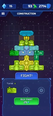 In construction mode, carefully plan the location of various ship parts to maximise their potential: place shields in front, guns behind, and don't forget to charge everything with batteries!