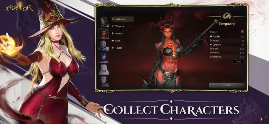Discover a vast array of characters, from valiant knights and mystical mages to cunning rogues and enigmatic creatures. Unlock and collect these characters to diversify your team and uncover the rich lore of Avalar.