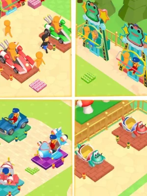 Tap, manage, and grow your park empire. Watch as your park thrives and generates money. If you grow more, your amusement park earns money while you’re away.