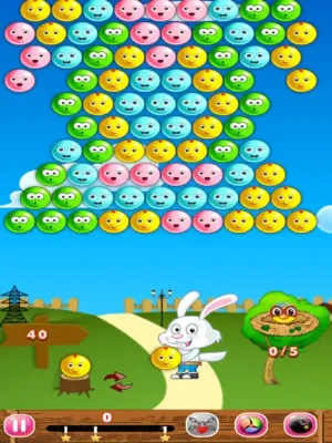 - Match three or more bubbles of same color to burst