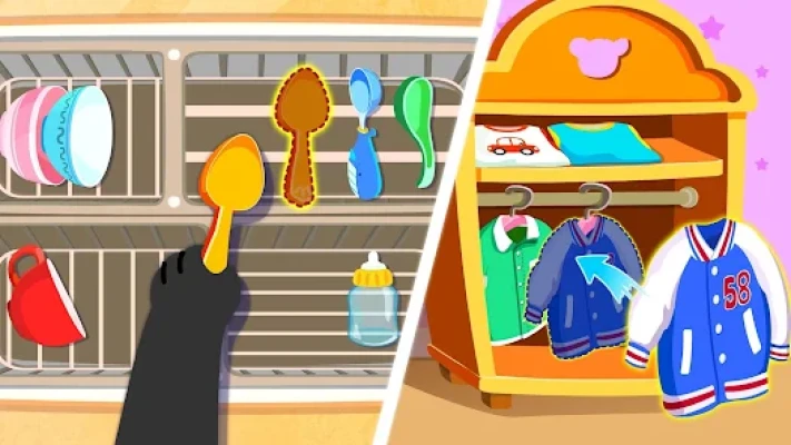 From dirty clothes to neat wardrobe, kids can have fun washing clothes playing through [Happy Clean] with unique gameplay, cute characters, and realistic clothing!