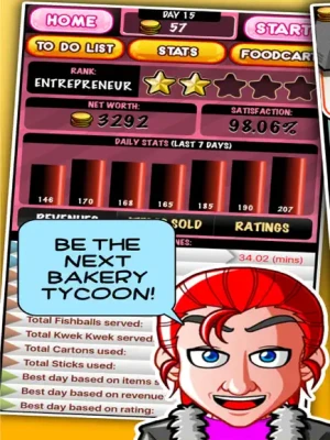 Serve cupcakes and doughnuts to your crazy customers. Upgrade your small bakery and unlock various food upgrades. Travel the world and put up a franchise from one location to another. Spend your earnings wisely and prioritize your upgrades. Bakery Tycoon Story lets you experience how it feels to manage your own bakery.