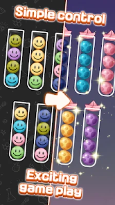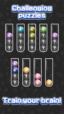 - The level is completed when all tubes are filled with balls of the same color.